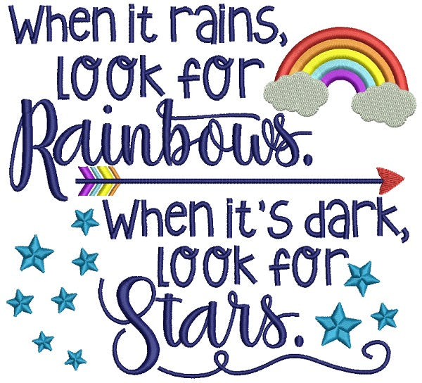 When It Rains Look For Rainbows When It's Dark Look For Stars Filled Machine Embroidery Design Digitized Pattern