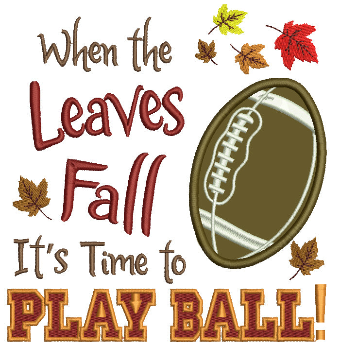 When The Leaves Fall It's Time To Play Football Applique Machine Embroidery Digitized Design Pattern