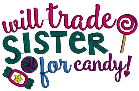 Will Trade Sister For Candy Applique Machine Embroidery Digitized Design Pattern