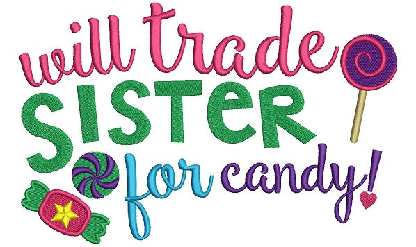Will Trade Sister For Candy Filled Machine Embroidery Digitized Design Pattern