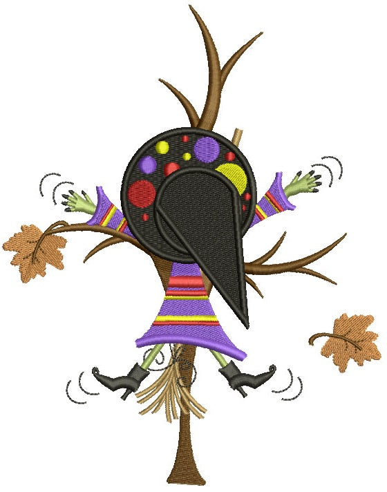 Witch Smacked into a Tree Halloween Filled Machine Embroidery Digitized Design Pattern