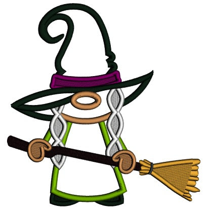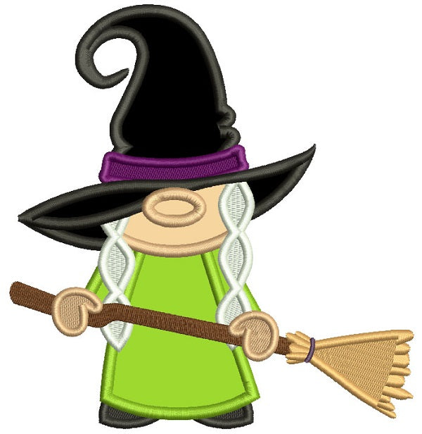 Witch Wearing Huge Hat Holding a Broom Halloween Applique Machine Embroidery Design Digitized Pattern