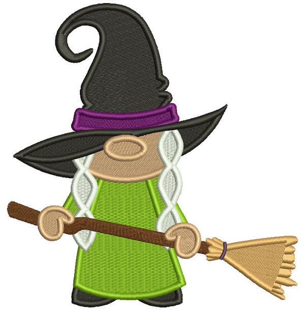 Witch Wearing Huge Hat Holding a Broom Halloween Filled Machine Embroidery Design Digitized Pattern