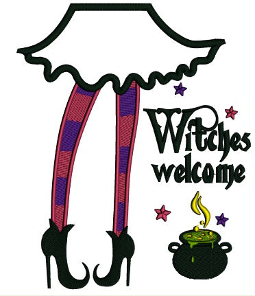 Witches Welcome Halloween Applique Machine Embroidery Design Digitized Pattern