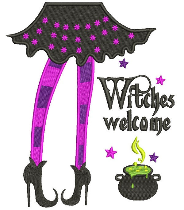 Witches Welcome Halloween Filled Machine Embroidery Design Digitized Pattern