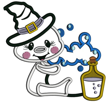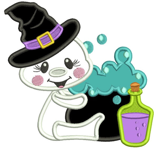 Wizard Ghost Brewing Potion Applique Halloween Machine Embroidery Design Digitized Pattern