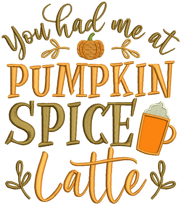 You Had Me At Pumpkin Spice Thanksgiving Applique Machine Embroidery Design Digitized Pattern