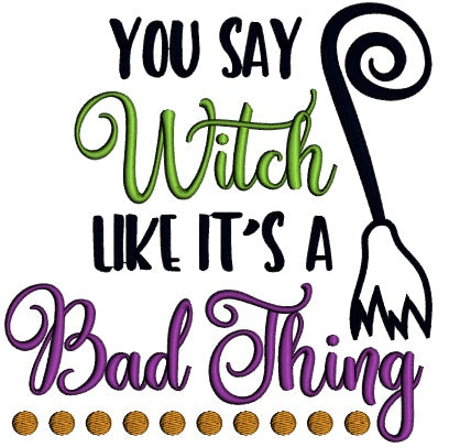 You Say Witch Like It's A Bad Thing Applique Halloween Machine Embroidery Design Digitized Pattern